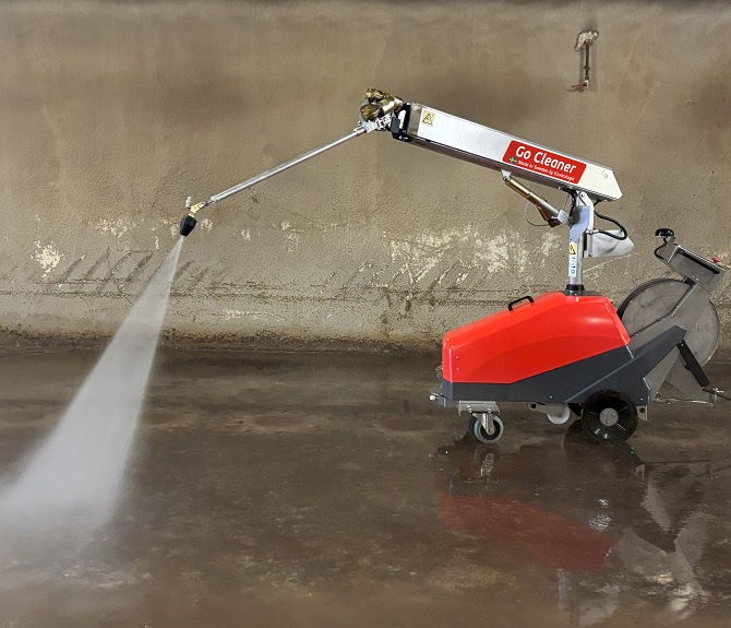 - Максимална мобилност: GO Cleaner измива прецизно пода, стените и тавана благодарение на специалните съединения, кулата тип „кран“, телескопичното рамо, възможните движения във всичките 3 равнини, дюзата, която се върти на 360 градуса