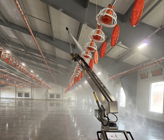 Роботът EVO Cleaner е специално адаптиран от Envirologic AB, за да измие успешно птицефермите.